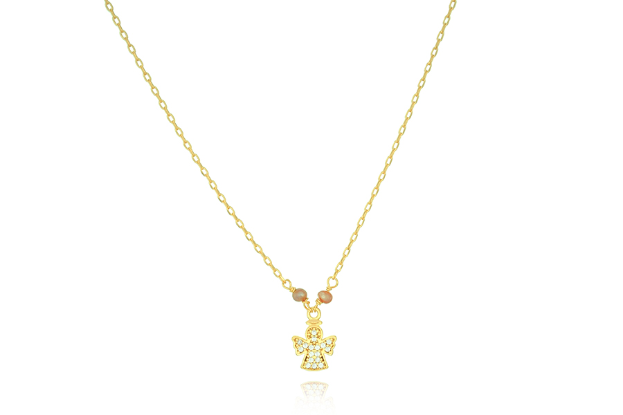 GARGANTILHA BANHADA EM OURO, ELO PORTUGUÊS 2mm, 45cm COMPRIMENTO COM DOIS FIOS DE ZIRCÔNIA 1cm CADA