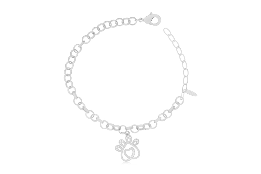 PULSEIRA BANHADA EM PRATA LEVE, PONTO DE LUZ 3mm DIÂMETRO E CORAÇÃO COM PATA 8mm LARGURA, ELO VENEZIANA ALONGADA 1,50mm LARGURA