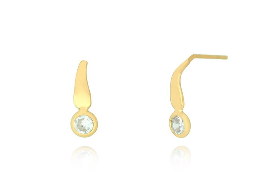 BRINCO BANHADO EM OURO, 29mm DE ALTURA, TARRAXA ASA, LISO OU ACETINADO, COLEÇÃO ALQUIMIA