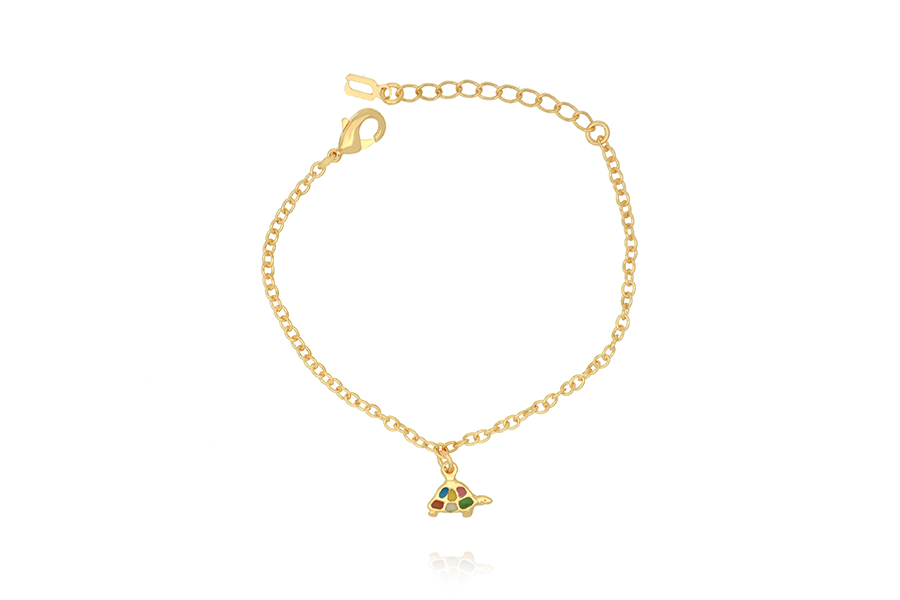 PULSEIRA INFANTIL BANHADA EM OURO, VENEZIANA LONGA 1,50mm ESPESSURA E CHAPINHA COM MENINA 24mm COMPRIMENTO