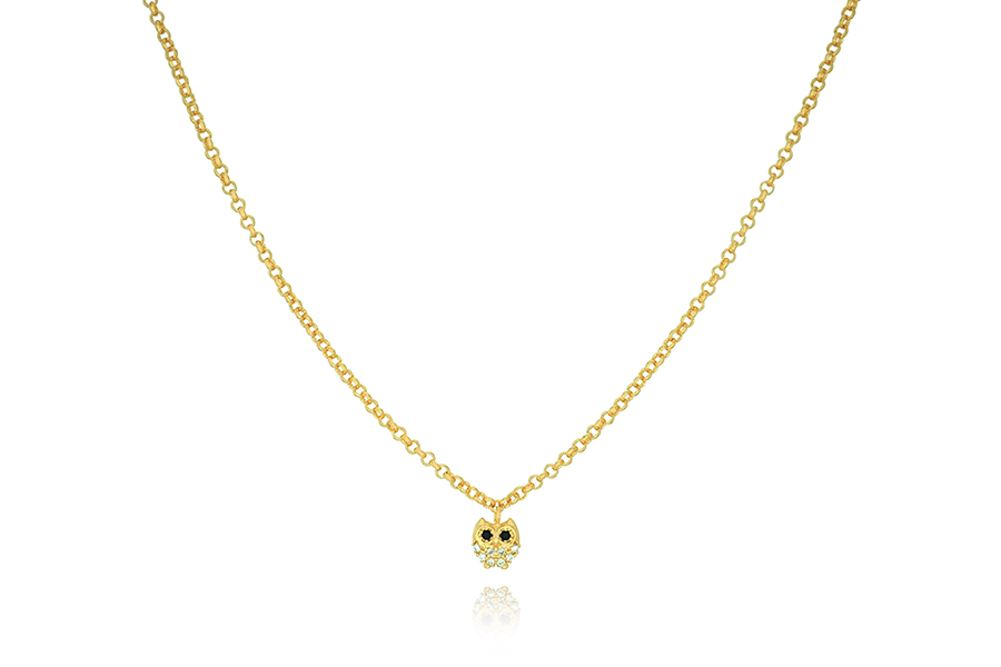 CHOKER BANHADA EM OURO, ELO GRUMET 2mm LARGURA, 35cm COMPRIMENTO, EXTENSOR 10cm COMPRIMENTO E URSO 13mm ALTURA