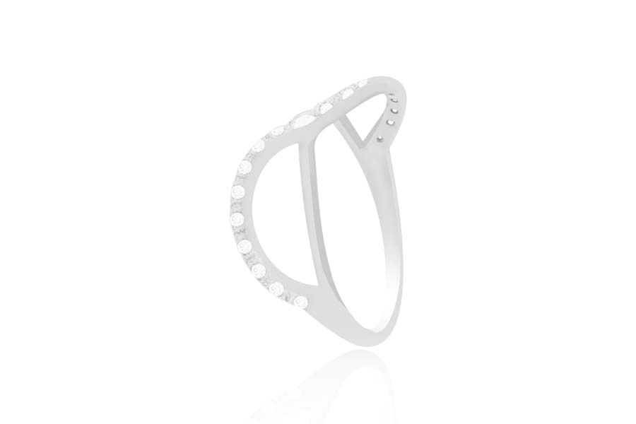 ANEL EM PRATA, SINUOSO, CURVAS, COM 12 ZIRCÔNIAS