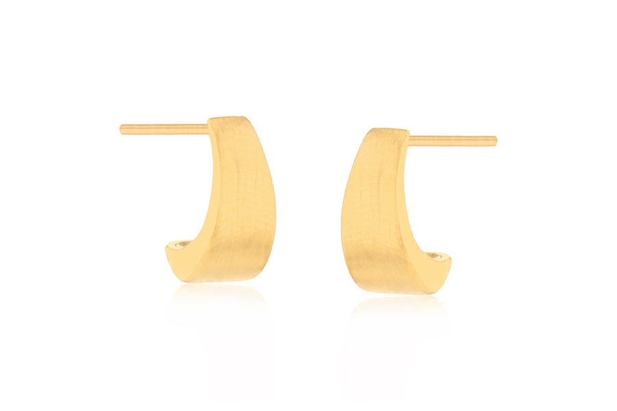 BRINCO BANHADO EM OURO, MEIA ARGOLA, 16mm ALTURA E 10,50mm LARGURA, LISO OU ACETINADO