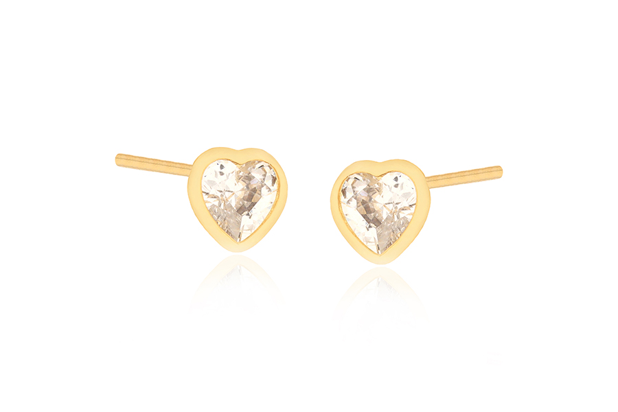 BRINCO BANHADO EM OURO, CORAÇÃO 8,60mm COMPRIMENTO, COM RESINA COLORIDA