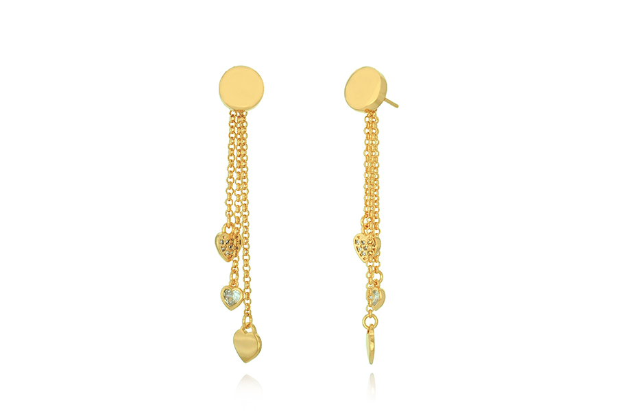 BRINCO BANHADO EM OURO, CORAÇÃO E PONTO DE LUZ 6mm ALTURA