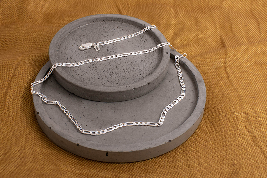 CORRENTE BANHADA EM PRATA LEVE, ELO SINGAPURA 1,50mm ESPESSURA, 40cm COMPRIMENTO, EXTENSOR 5cm COMPRIMENTO E PESO 2g