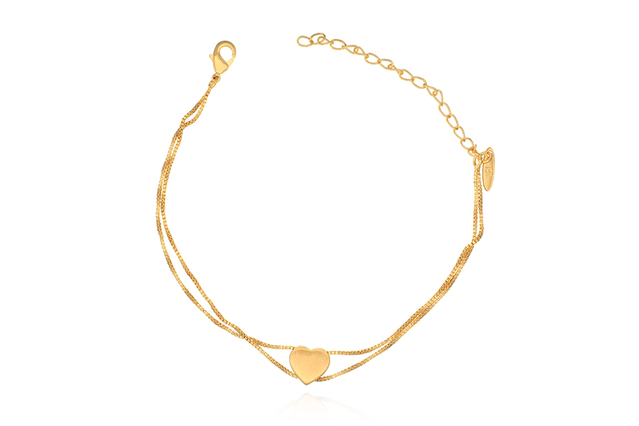 PULSEIRA BANHADA EM OURO, ELO PORTUGUÊS 7mm DIÂMETRO, 2,50mm ESPESSURA E CORAÇÃO 27mm LARGURA, LISO OU ACETINADO