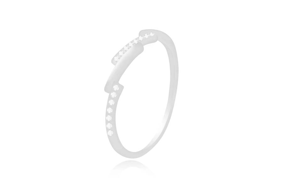 ANEL BANHADO EM RÓDIO BRANCO, SOLITÁRIO 3mm, COM O ARO TRABALHADO
