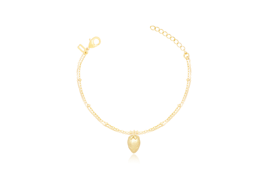 PULSEIRA BANHADA EM OURO, ELO PORTUGUÊS 3mm, ELO CORAÇÃO 4,20mm LARGURA, PINGENTE CORAÇÃO 11mm LARGURA COM MENINA
