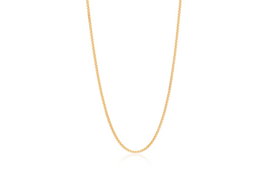 CORRENTE BANHADA EM OURO, ELO VENEZIANA 0,80mm, 45cm COMPRIMENTO, EXTENSOR 5cm COMPRIMENTO E PESO 2,20g