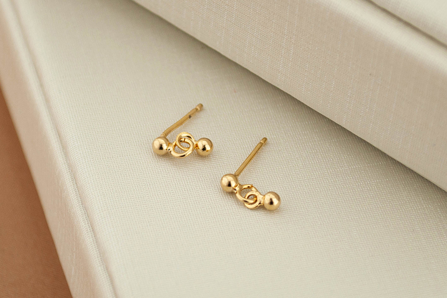 BRINCO BANHADO EM OURO, 29mm DE ALTURA, TARRAXA ASA, LISO OU ACETINADO, COLEÇÃO ALQUIMIA