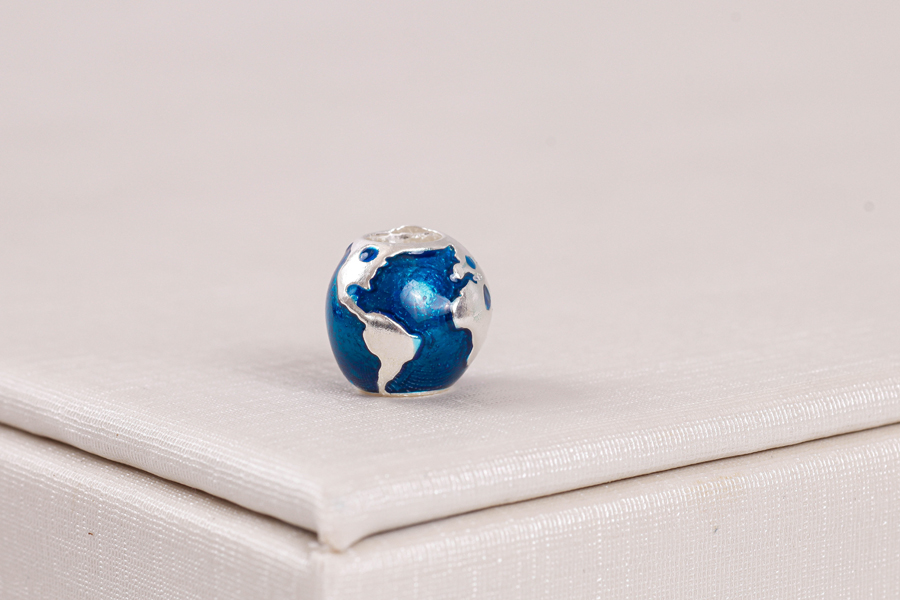 PINGENTE EM PRATA, SEPARADOR, GLOBO TERRESTRE RESINADO, 10,50mm DIÂMETRO