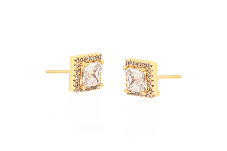 BRINCO BANHADO EM OURO, CRISTAL QUADRADO 8mm