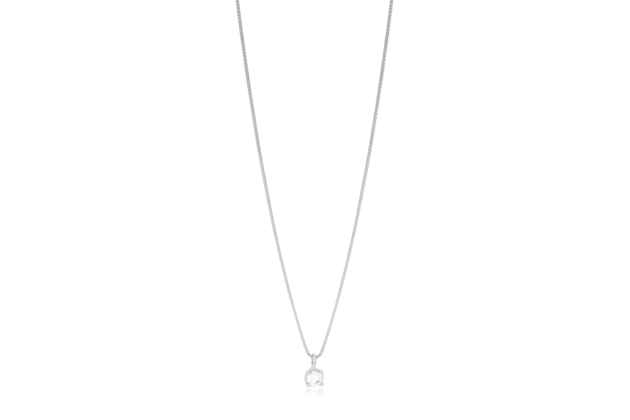 GARGANTILHA EM PRATA, ELO VENEZIANA 0,60mm, 40cm COMPRIMENTO, EXTENSOR 5cm, PONTO DE LUZ 5mm, CRAVAÇÃO INGLESA, COM BANHO DE RÓDIO BRANCO, COLEÇÃO AURA