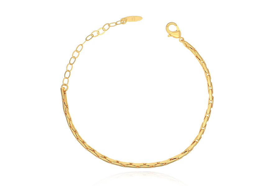 BRACELETE BANHADO EM OURO, OVAL 4mm LARGURA E 6,50cm COMPRIMENTO, COM FECHO, LISO OU ACETINADO