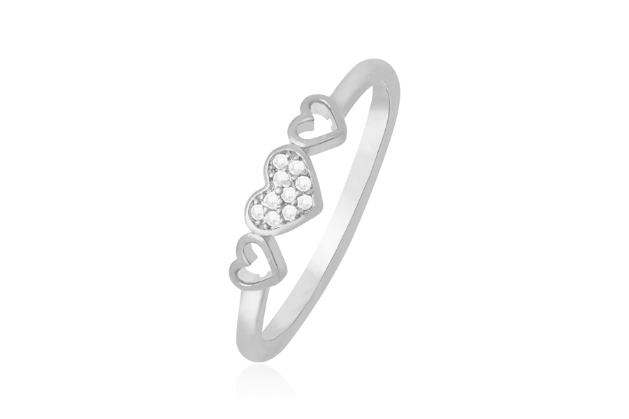 ANEL PRATA LEVE 1 FILEIRA DE ZIRCÔNIAS E LATERAIS COM CORAÇÕES VAZADOS