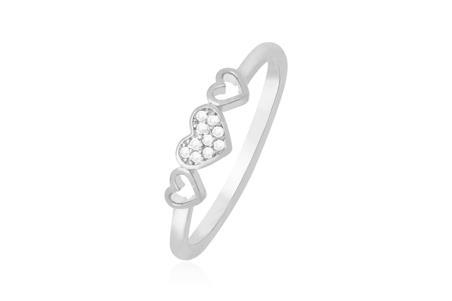 ANEL PRATA LEVE 1 FILEIRA DE ZIRCÔNIAS E LATERAIS COM CORAÇÕES VAZADOS