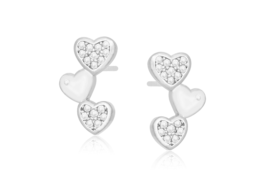 BRINCO BANHADO EM RÓDIO BRANCO, CORAÇÃO 4mm LARGURA, PARA QUALQUER COR DE PEDRA