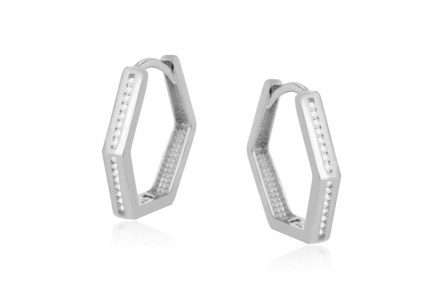 BRINCO EM PRATA, MEIA ARGOLA CRAVEJADA 19mm ALTURA E 1,30mm ESPESSURA