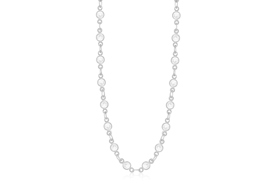 GARGANTILHA BANHADA EM RÓDIO BRANCO, PONTO DE LUZ 4mm, ELO VENEZIANA 0,80mm, 40cm COMPRIMENTO, EXTENSOR 5cm COMPRIMENTO, CRAVAÇÃO INGLESA