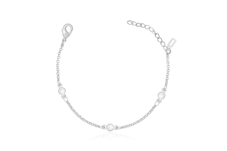 PULSEIRA EM PRATA, INFANTIL, 6 ZIRCÔNIAS REDONDAS COM CRAVAÇÃO INGLESA 5mm DIÂMETRO, ELO PORTUGUÊS, 13+1cm COMPRIMENTO