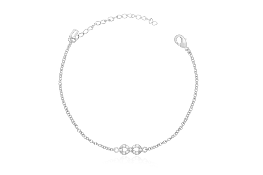 PULSEIRA BANHADA EM RÓDIO BRANCO, METADE COM ELO PORTUGUÊS 5mm E METADE COM ELO REDONDO 10mm E CORRENTE, 22cm COMPRIMENTO SEM EXTENSOR