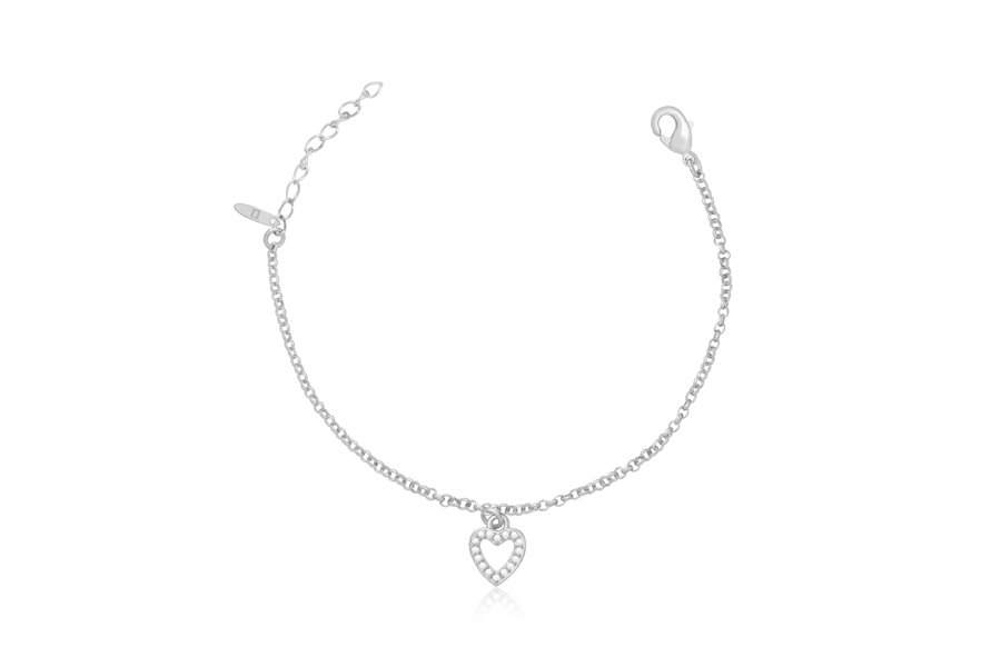 PULSEIRA DE BIJUTERIA INFANTIL ELO PORTUGUÊS 2mm 12cm COMPRIMENTO E CORAÇÃO LOVE 750mm LARGURA