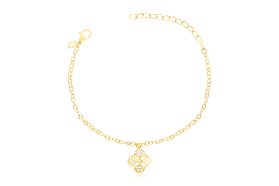 PULSEIRA BANHADA EM OURO, CORRENTE ELO PORTUGUÊS 2,50mm, 17cm COMPRIMENTO, EXTENSOR 5cm COMPRIMENTO E PESO 2,20g