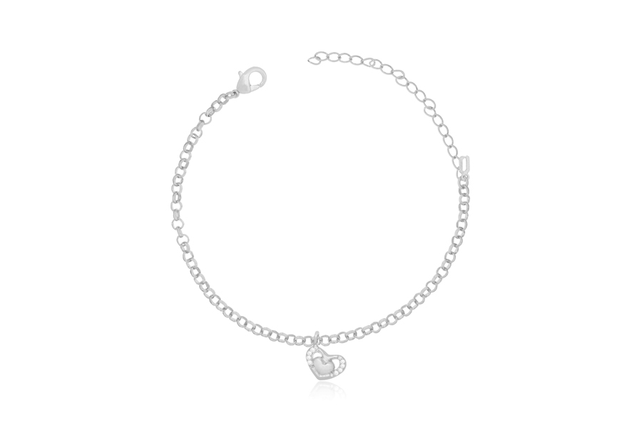 PULSEIRA DE BIJUTERIA INFANTIL ELO PORTUGUÊS 2mm 12cm COMPRIMENTO E CORAÇÃO LOVE 750mm LARGURA