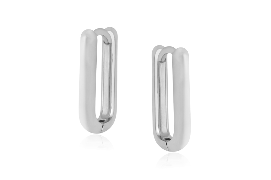 BRINCO BANHADO EM RÓDIO BRANCO, 23mm ALTURA E 13mm LARGURA, LISO OU ACETINADO