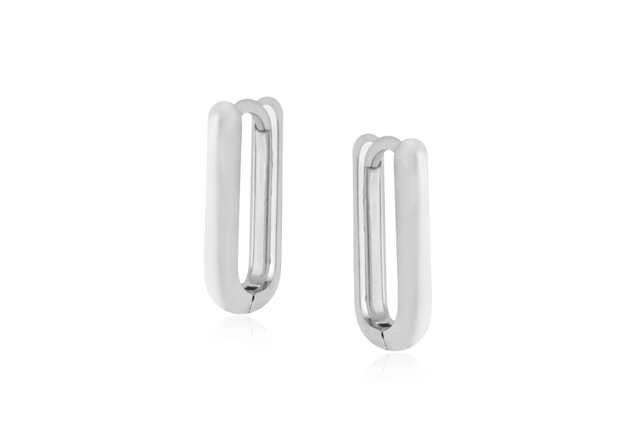 BRINCO BANHADO EM RÓDIO BRANCO, 20mm ALTURA E 16mm LARGURA