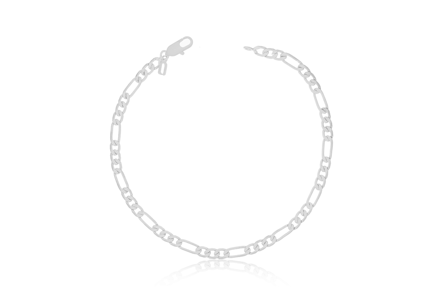 PULSEIRA BANHADA EM RÓDIO BRANCO, CORRENTE ELO 3,30mm ESPESSURA, 18cm COMPRIMENTO, EXTENSOR 5cm COMPRIMENTO E PESO 4,50g