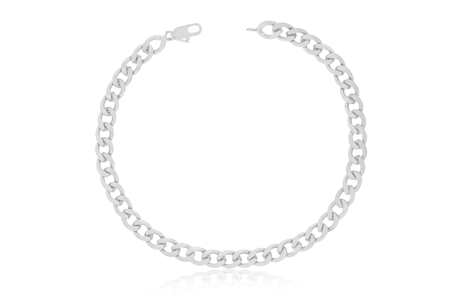 PULSEIRA BANHADA EM RÓDIO BRANCO, CORRENTE ELO 3,30mm ESPESSURA, 18cm COMPRIMENTO, EXTENSOR 5cm COMPRIMENTO E PESO 4,50g