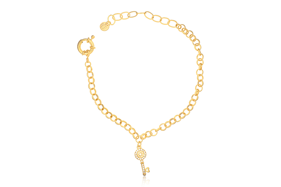 PULSEIRA BANHADA EM OURO, ELO PORTUGUÊS 7mm DIÂMETRO, 2,50mm ESPESSURA E CORAÇÃO 27mm LARGURA, LISO OU ACETINADO