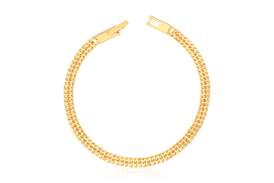 PULSEIRA BANHADA EM OURO, CORRENTE ELO PORTUGUÊS 5mm, 17cm COMPRIMENTO, EXTENSOR 5cm COMPRIMENTO E PESO 4,60g