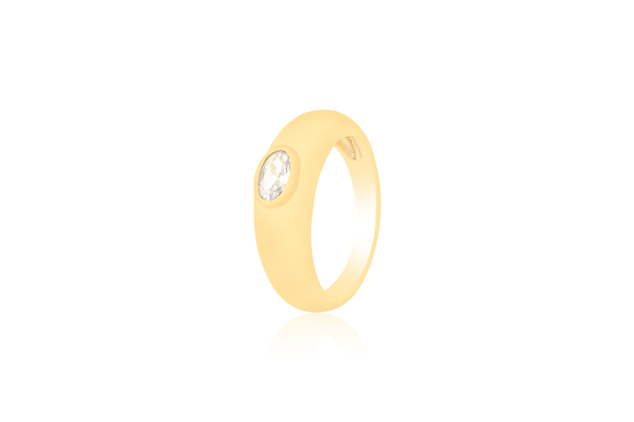 ANEL BANHADO EM OURO, SOLITÁRIO 10mm, ESTOQUE TRADICIONAL