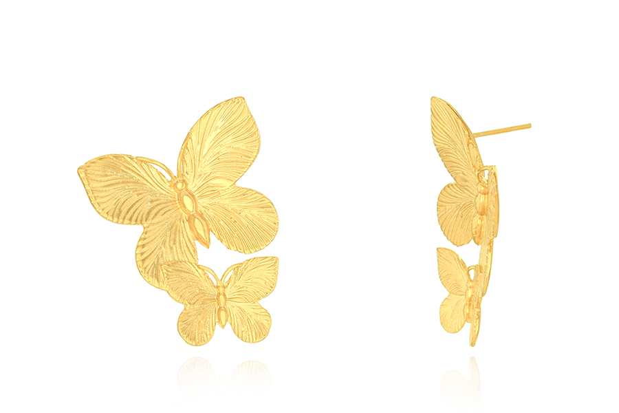 BRINCO BANHADO EM OURO, 29mm DE ALTURA, TARRAXA ASA, LISO OU ACETINADO, COLEÇÃO ALQUIMIA