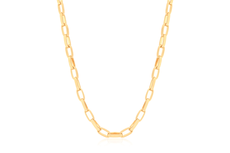 CORRENTE BANHADA EM OURO, ELO PORTUGUÊS 5mm, 40cm COMPRIMENTO, EXTENSOR 5cm COMPRIMENTO E PESO 11,3g