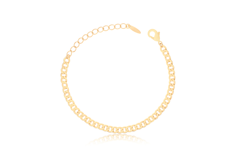 BRACELETE BANHADO EM OURO, OVAL 4mm LARGURA E 6,50cm COMPRIMENTO, COM FECHO, LISO OU ACETINADO