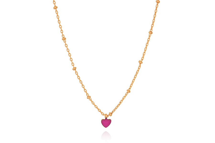 CHOKER BANHADA EM OURO, ELO 7,20X2,70mm, 33cm COMPRIMENTO E CORAÇÃO 9,50mm LARGURA, COM RESINA COLORIDA