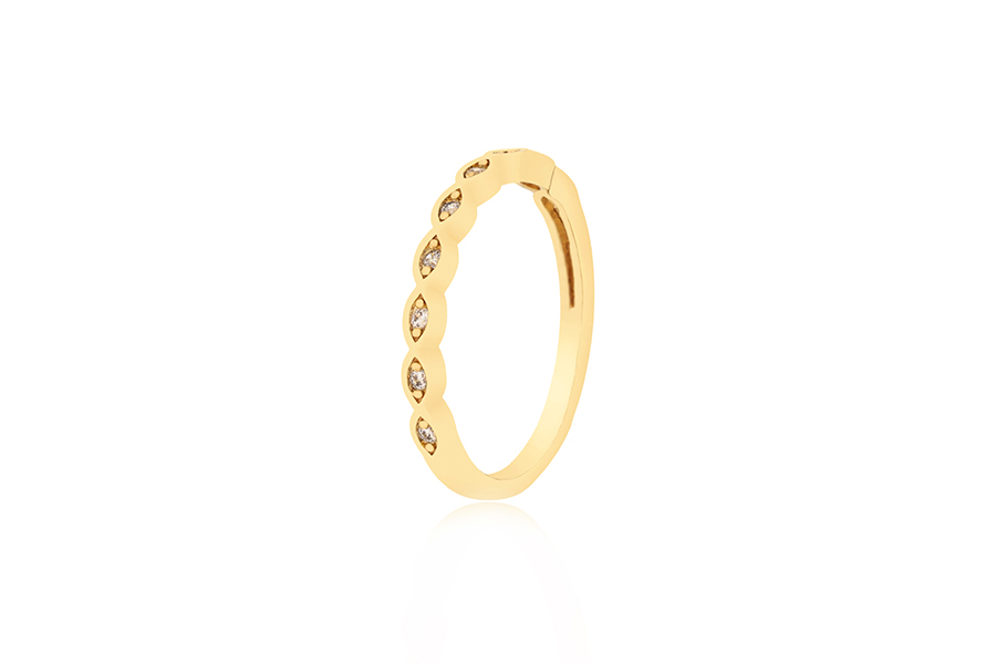 ANEL EM PRATA, ARO MEIO CRAVEJADO, 1,30mm LARGURA