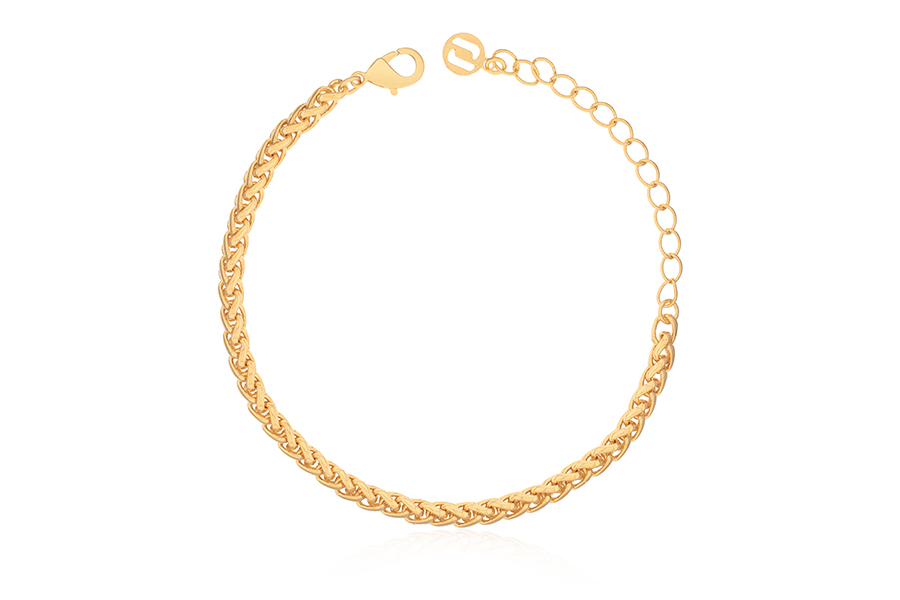 PULSEIRA BANHADA EM OURO, CORRENTE ELO CORDA 4mm, 17cm COMPRIMENTO, EXTENSOR 5cm COMPRIMENTO E PESO 9,10g