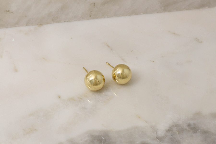 BRINCO BANHADO EM OURO, BASE 8,50mm, ELO PORTUGUÊS E ESFERA 9mm