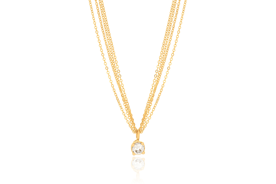 GARGANTILHA BANHADA EM OURO, VENEZIANA 0,80mm, 43cm COMPRIMENTO E ZIRCÔNIA REDONDA 8mm, PARA QUALQUER COR DE PEDRA