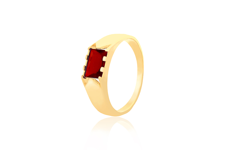 ANEL BANHADO EM OURO, MASCULINO, PEDRA 8mm PRETA OU VERMELHA