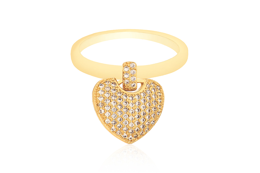 ANEL BANHADO EM OURO CORAÇÃO 7mm ALTURA E ZIRCÔNIAS BRANCAS OU COLORIDAS