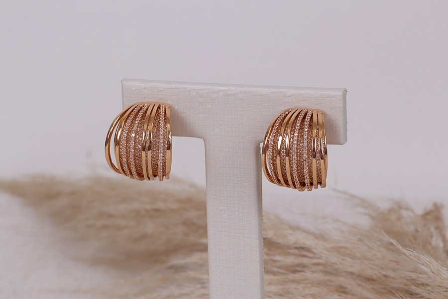 BRINCO BANHADO EM OURO, MEIA ARGOLA, 3 FIOS, 2 RESINADOS E 1 CRAVEJADO, 14,50mm ALTURA