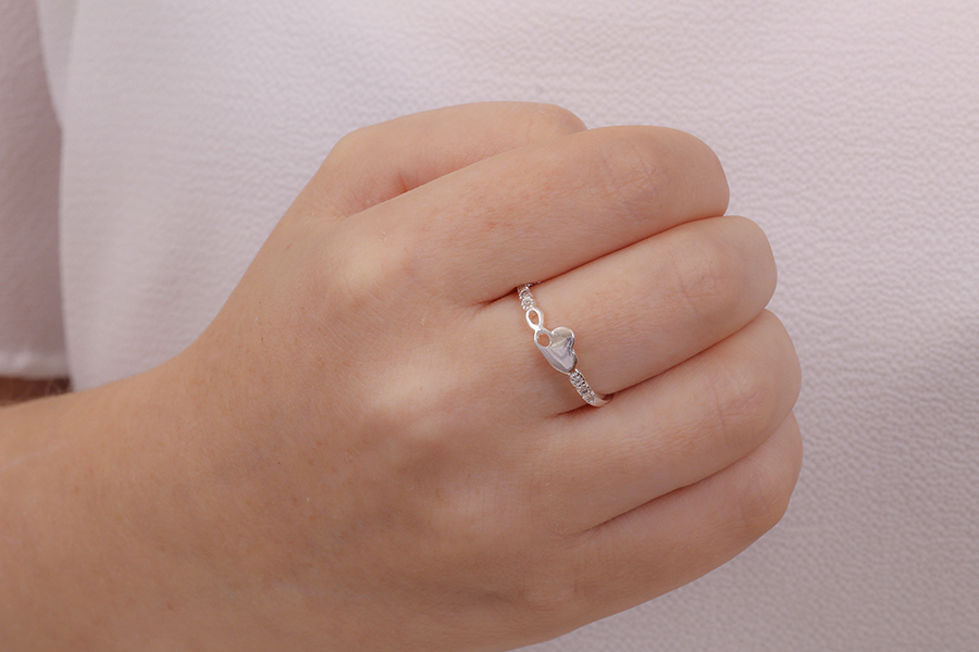 ANEL BANHADO EM RÓDIO BRANCO, CORAÇÃO 5mm LARGURA