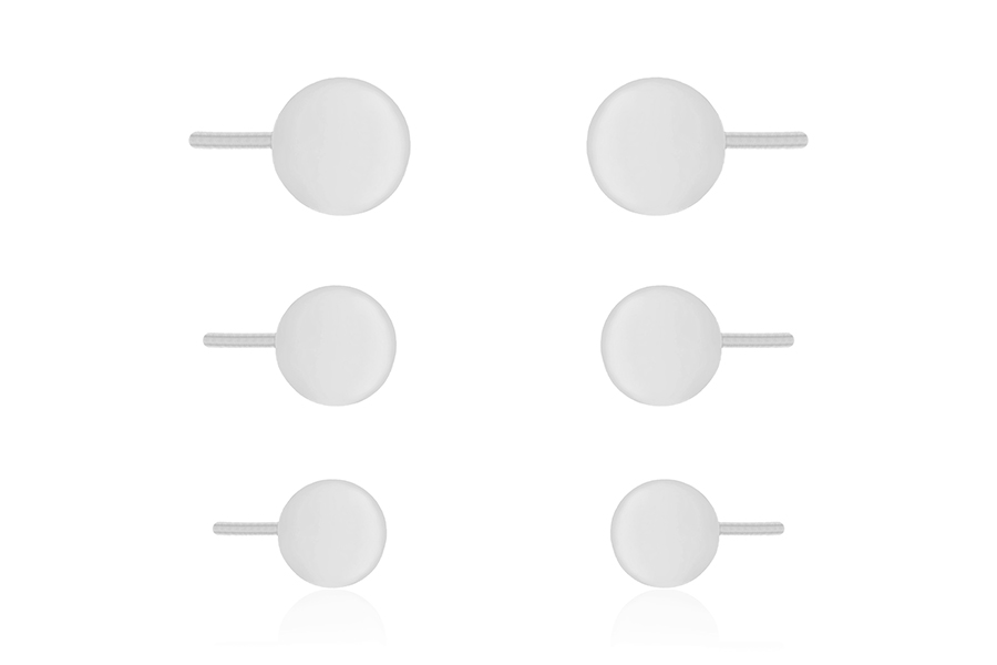 CONJUNTO BANHADO EM RÓDIO BRANCO, TRIO DE BRINCOS PONTO DE LUZ 5, 4 E 3mm