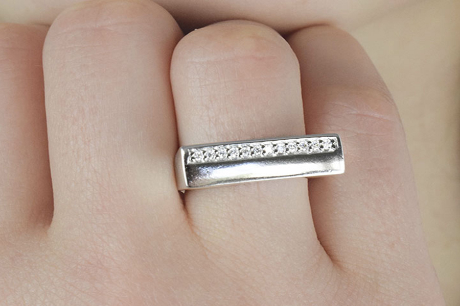 ANEL BANHADO EM RÓDIO BRANCO, RETANGULAR 7mm LARGURA